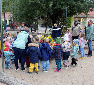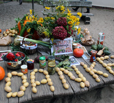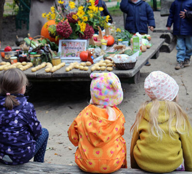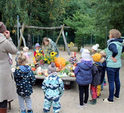 Der Herbst ist da und wie in jedem Jahr bedanken wir uns mit einem kleinen Fest bei der Natur für ihre Gaben. Unser Kinderhauskinder haben wieder fleißig Kartoffeln, Äpfel, Möhren, Kürbisse, Zwiebeln, Marmeladen, Blumen, selbstgebackenes Brot und vieles mehr für unseren Gabentisch mitgebracht. Nacheinander haben die Kinder erzählt, was sie uns auf den Tisch gelegt haben und ob es denn aus dem eigenen Garten oder vielleicht vom Bauern kommt. Passende Lieder und ein Tänzchen durften natürlich auch nicht fehlen.
